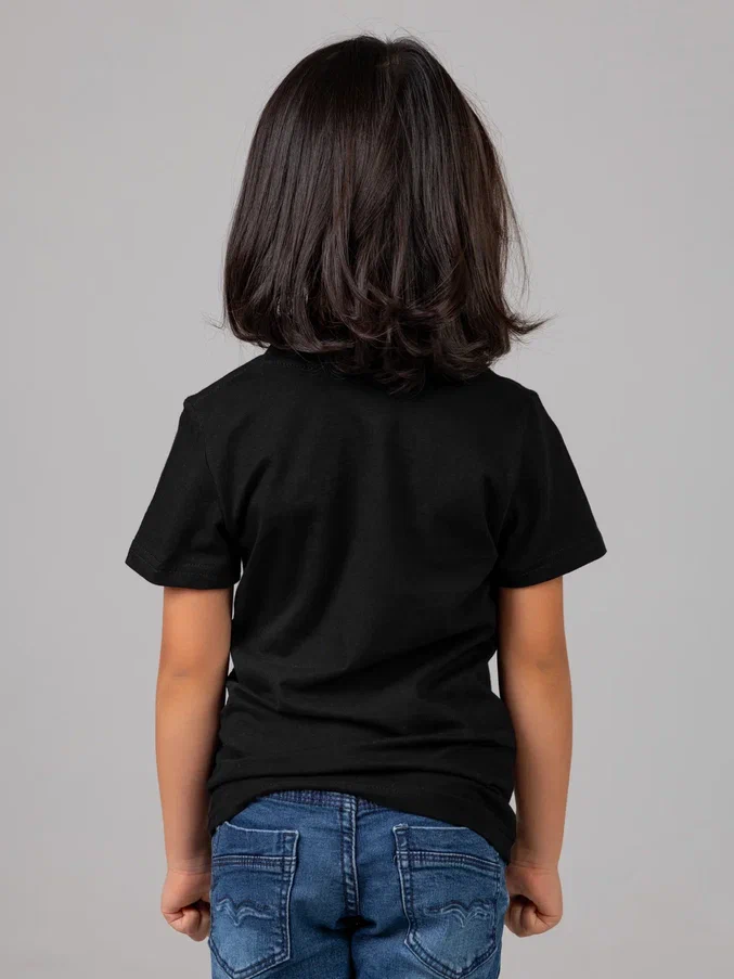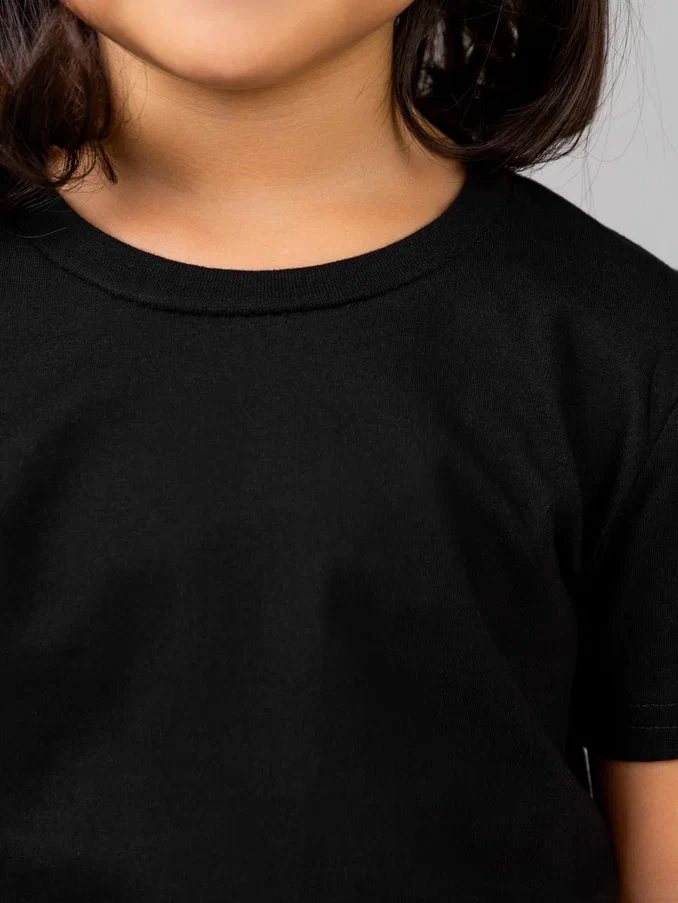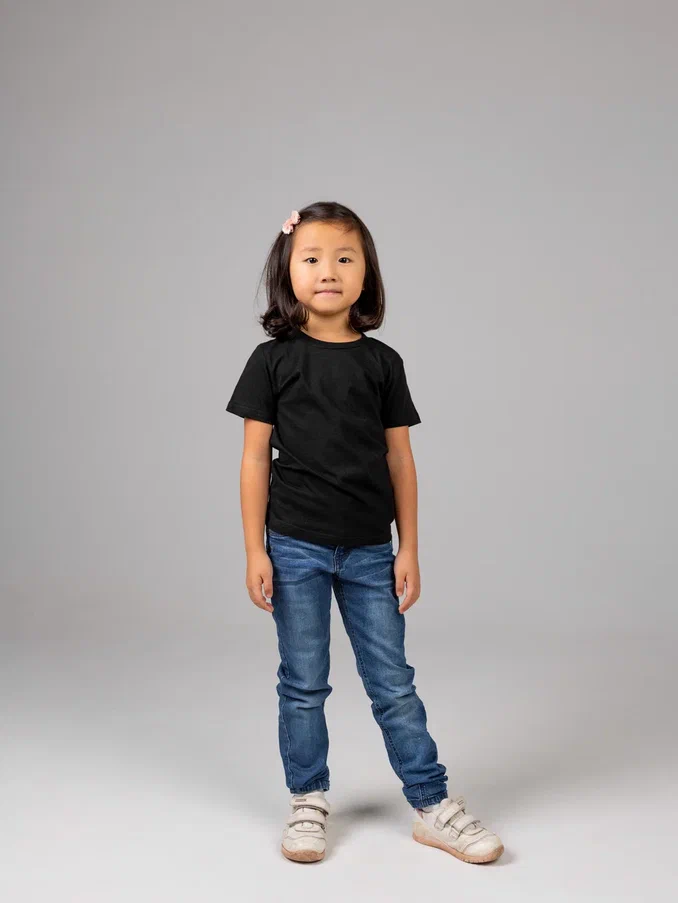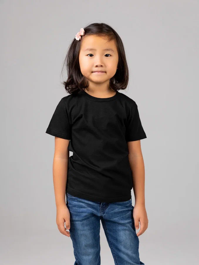 Футболка базовая детская для девочек черная 160 гр/м Кулирная гладь из кардной пряжи
