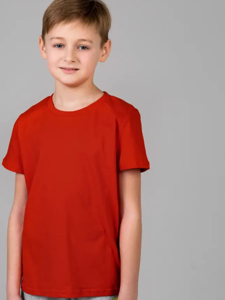Футболка базовая детская для мальчиков красная 160 гр/м Кулирная гладь из кардной пряжи