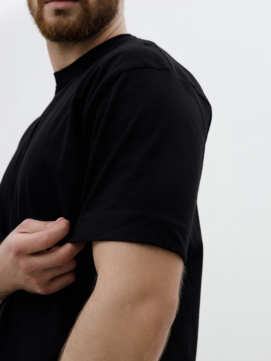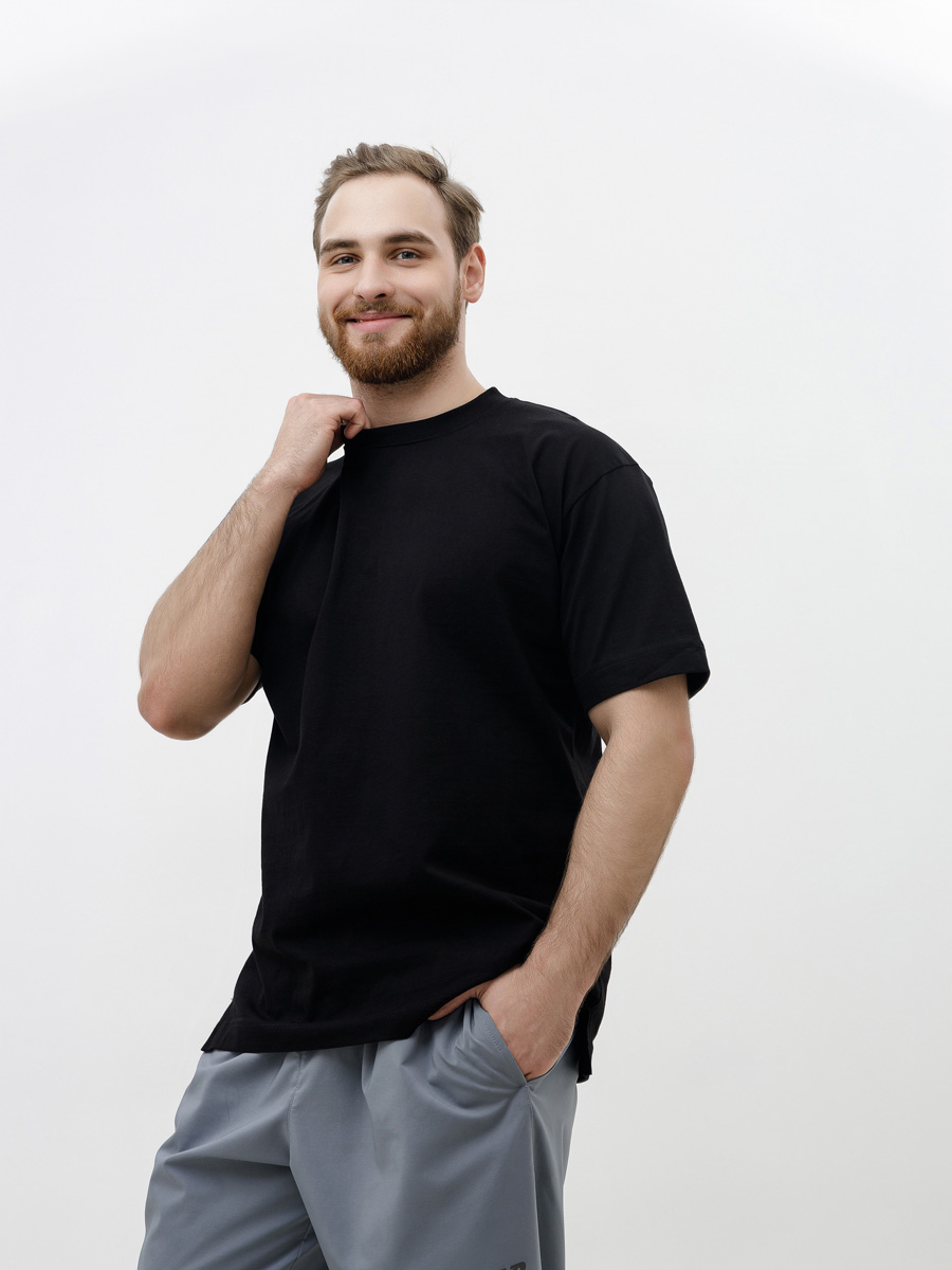 Футболка мужская оверсайз черная 200 г/м2 Кулирная гладь из гребенной пряжи (высший сорт, длинноволокнистый хлопок)