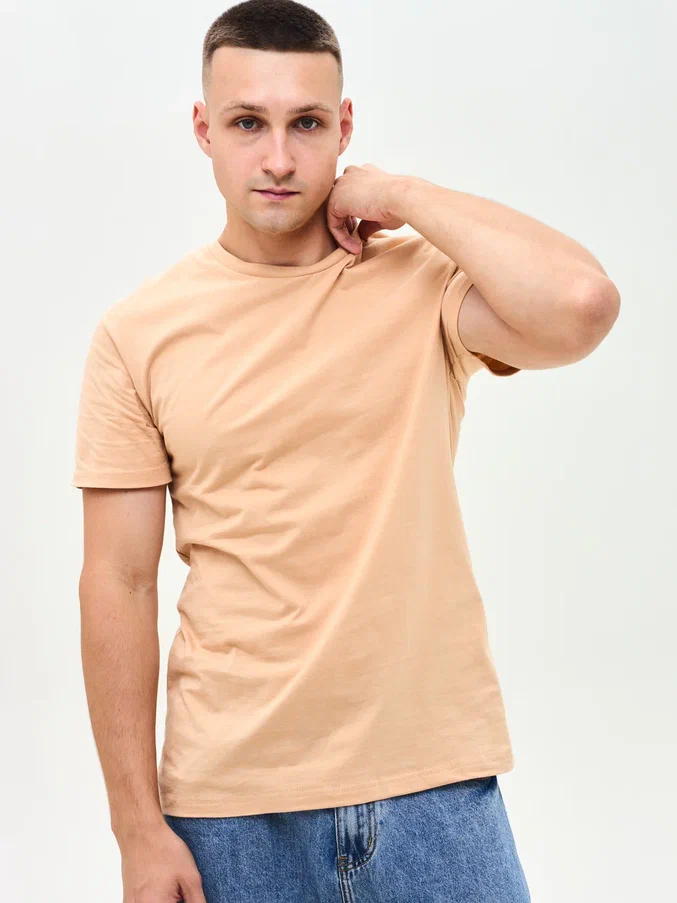 Мужская базовая футболка телесная 160 г/м2 Кулирная гладь из кардной пряжи
