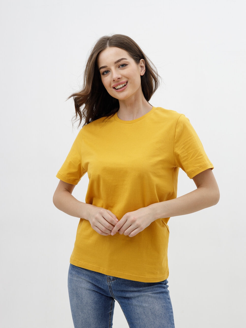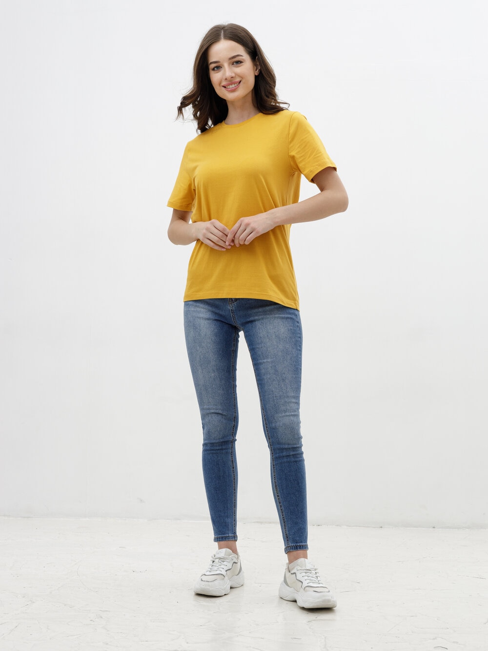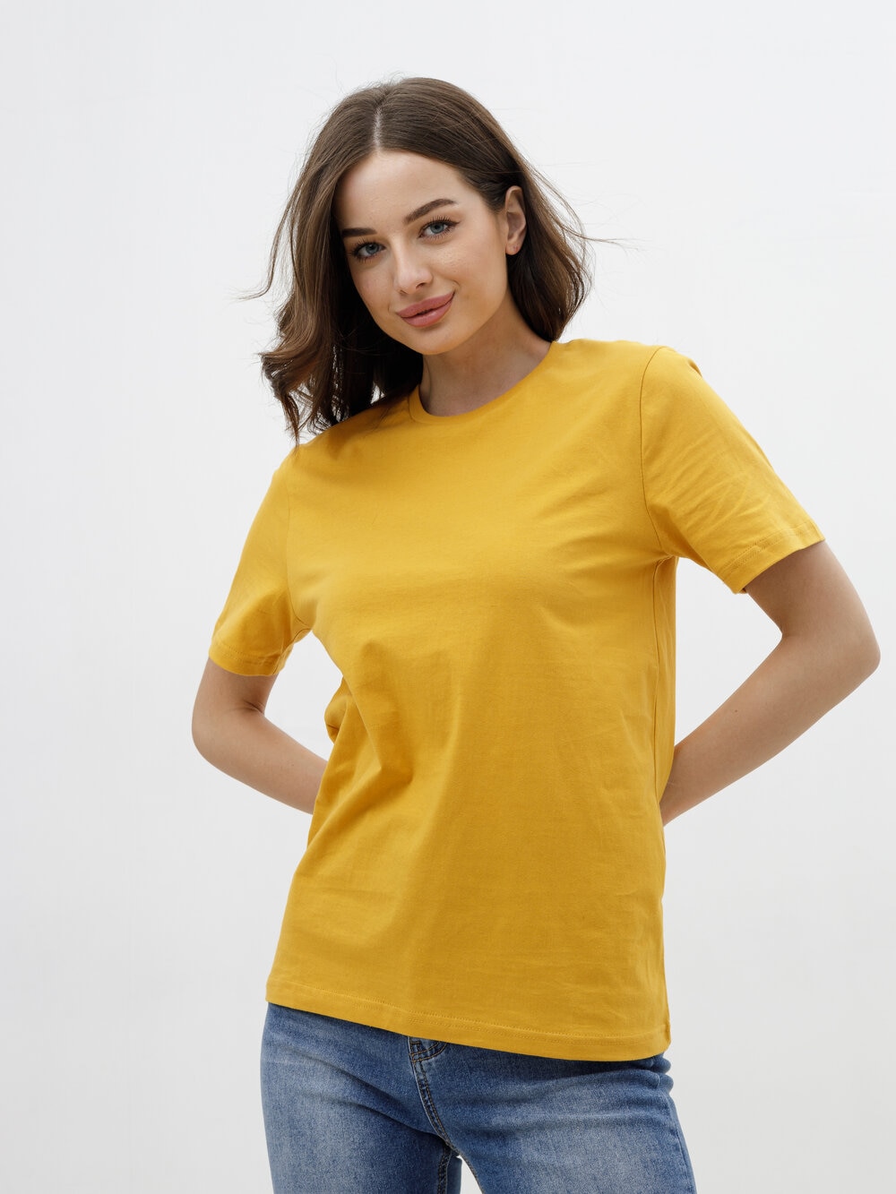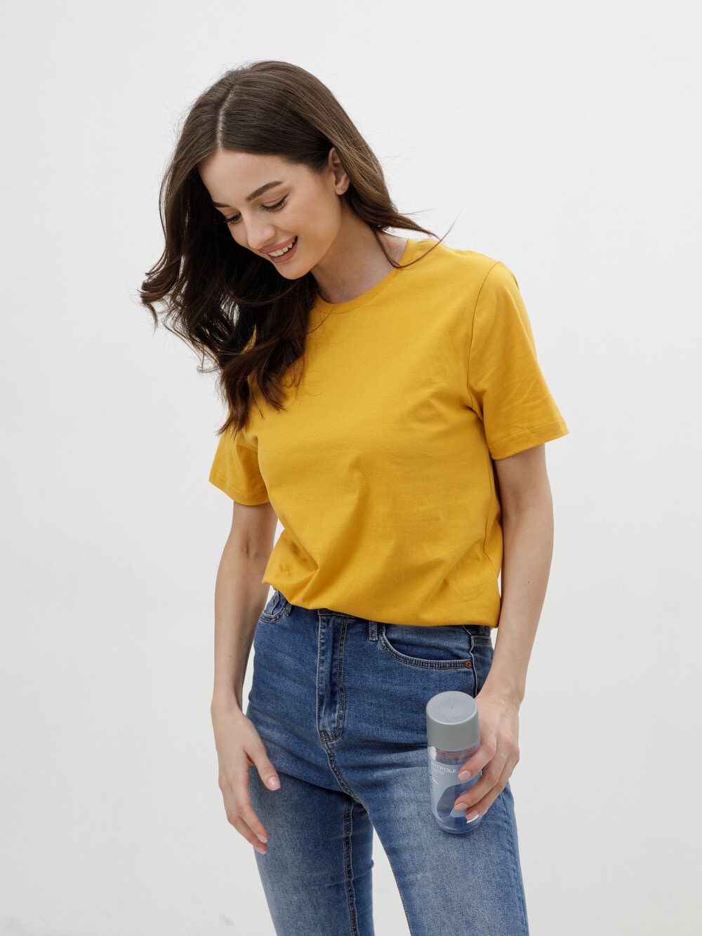 Женская базовая футболка горчичная 160 г/м2 Кардная пряжа