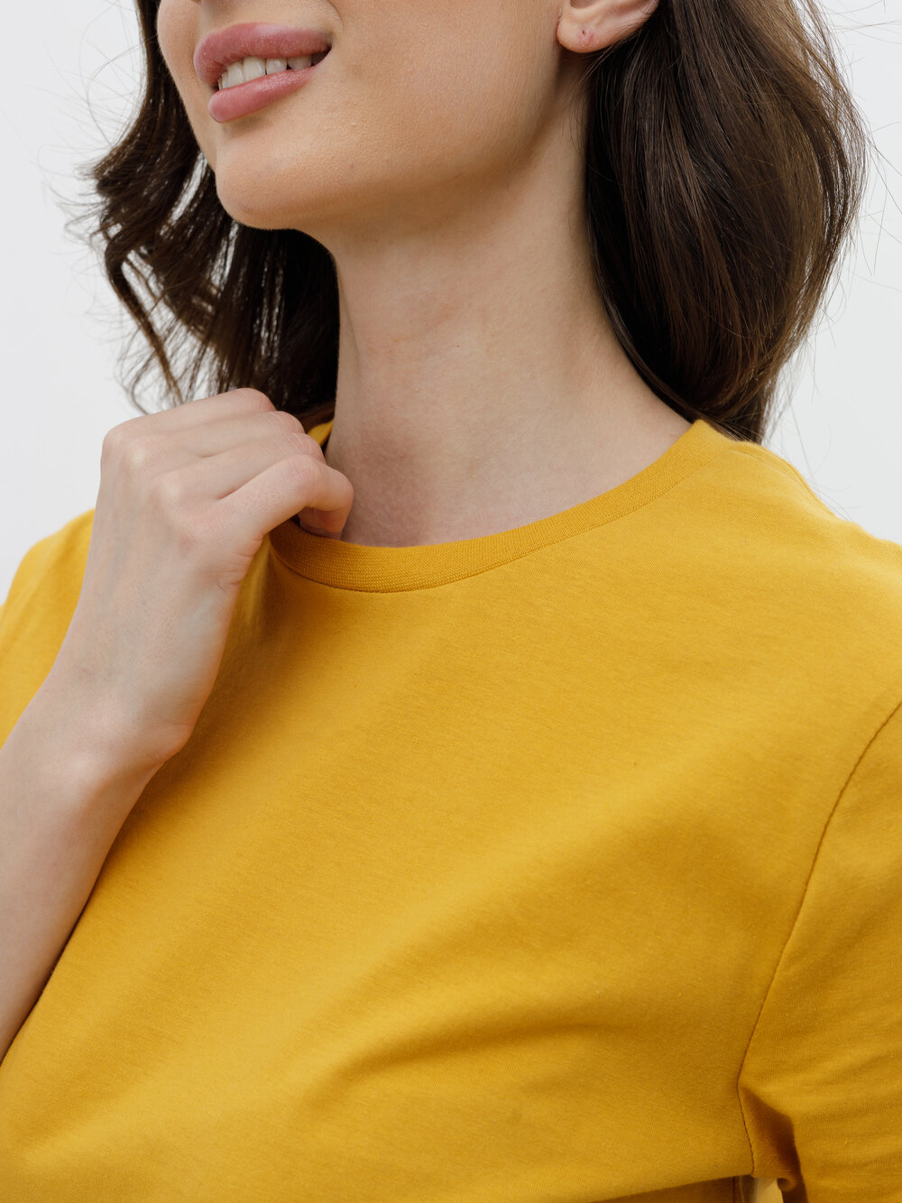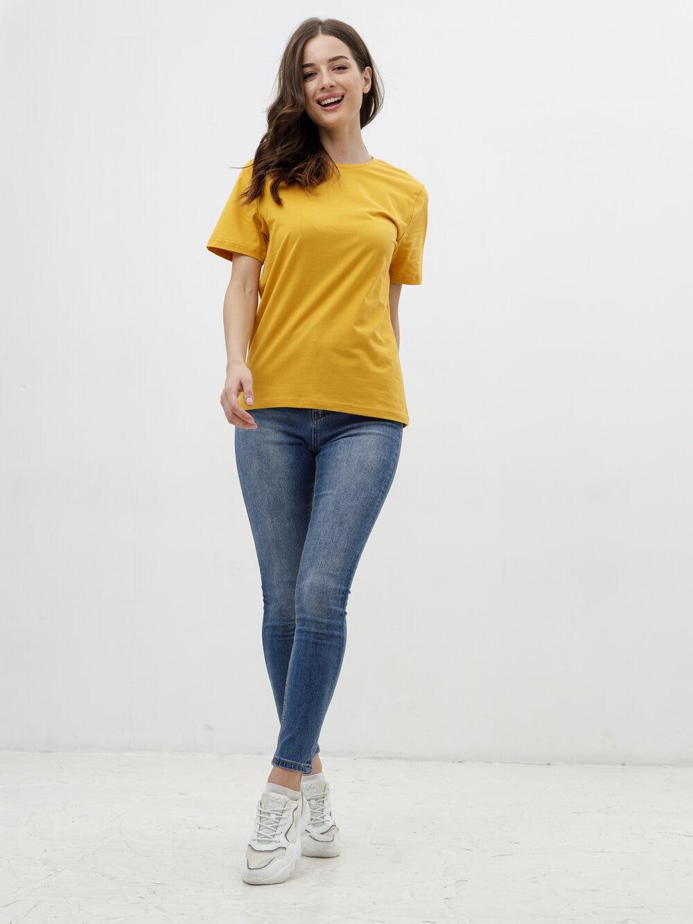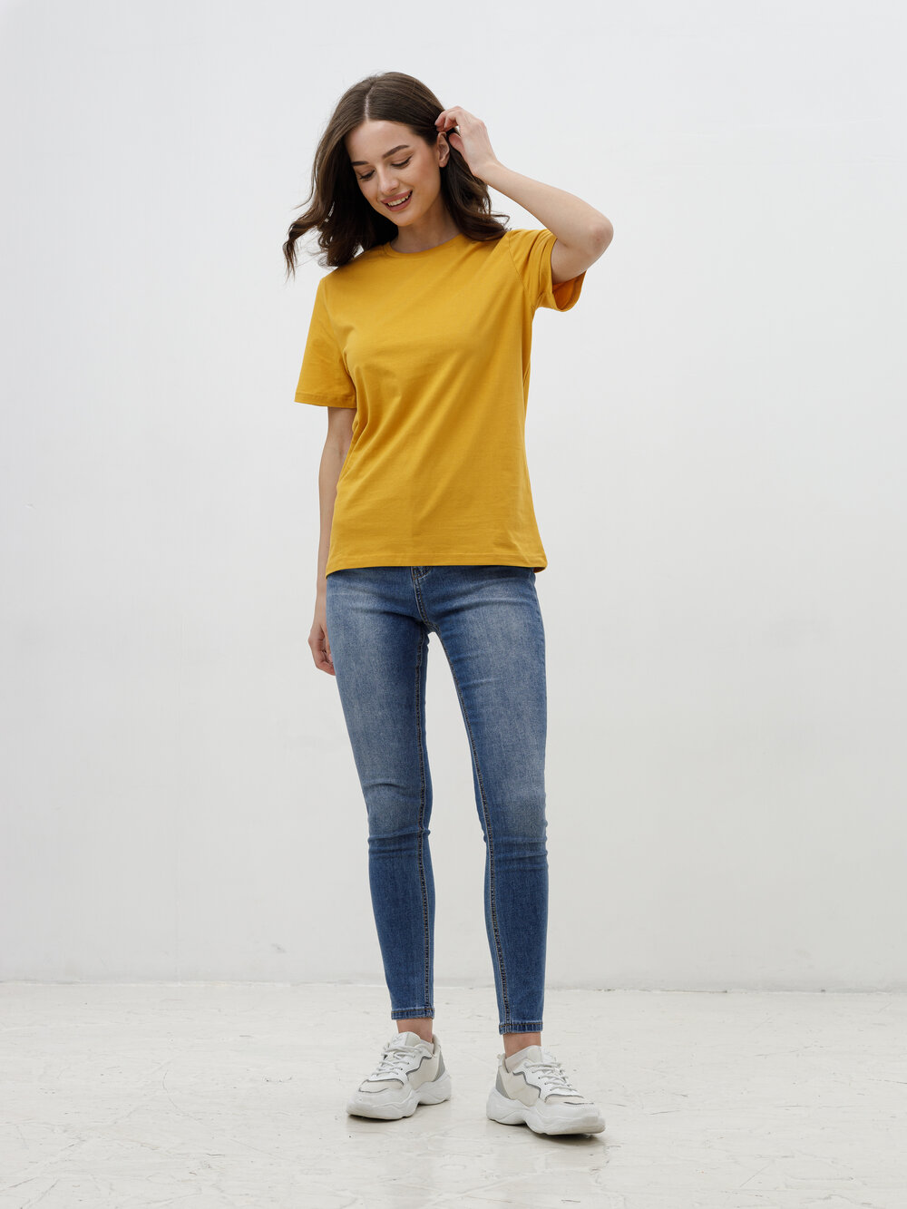 Женская базовая футболка горчичная 160 г/м2 Кардная пряжа