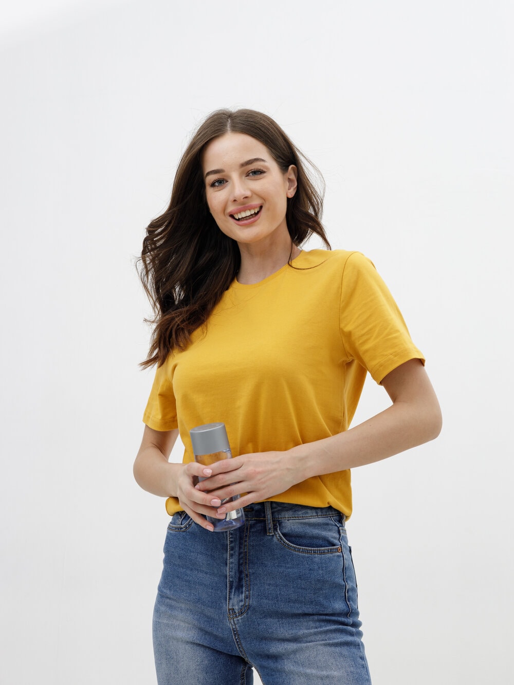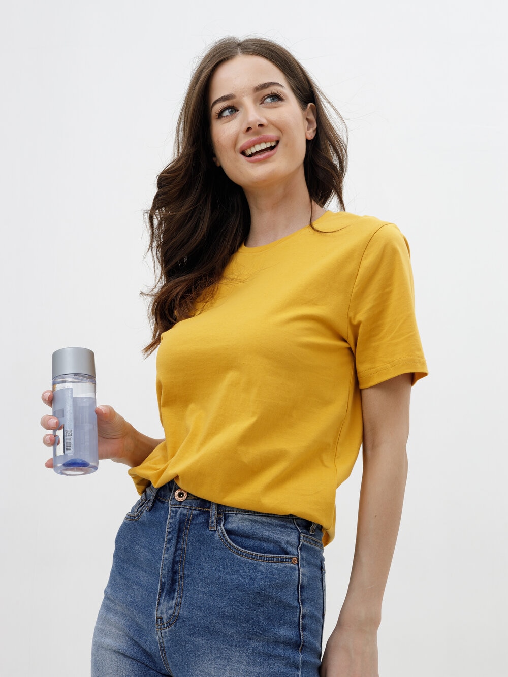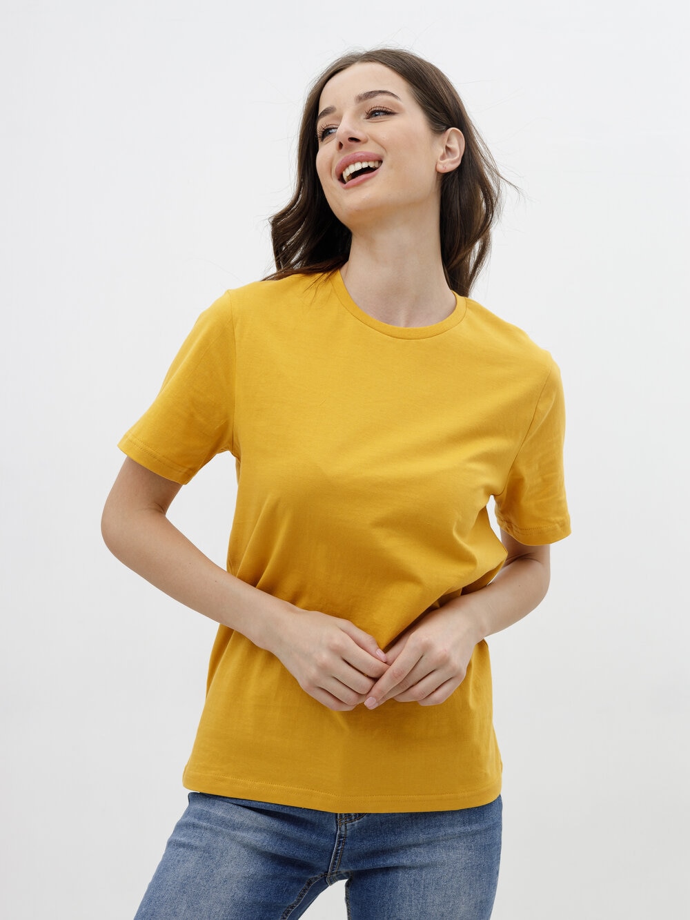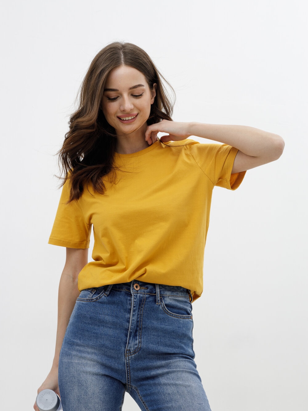 Женская базовая футболка горчичная 160 г/м2 Кардная пряжа