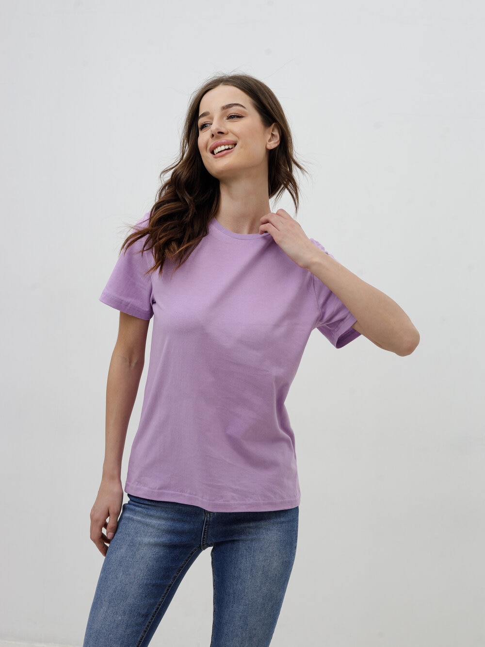 Женская базовая футболка сиреневая 160 г/м2 Кардная пряжа